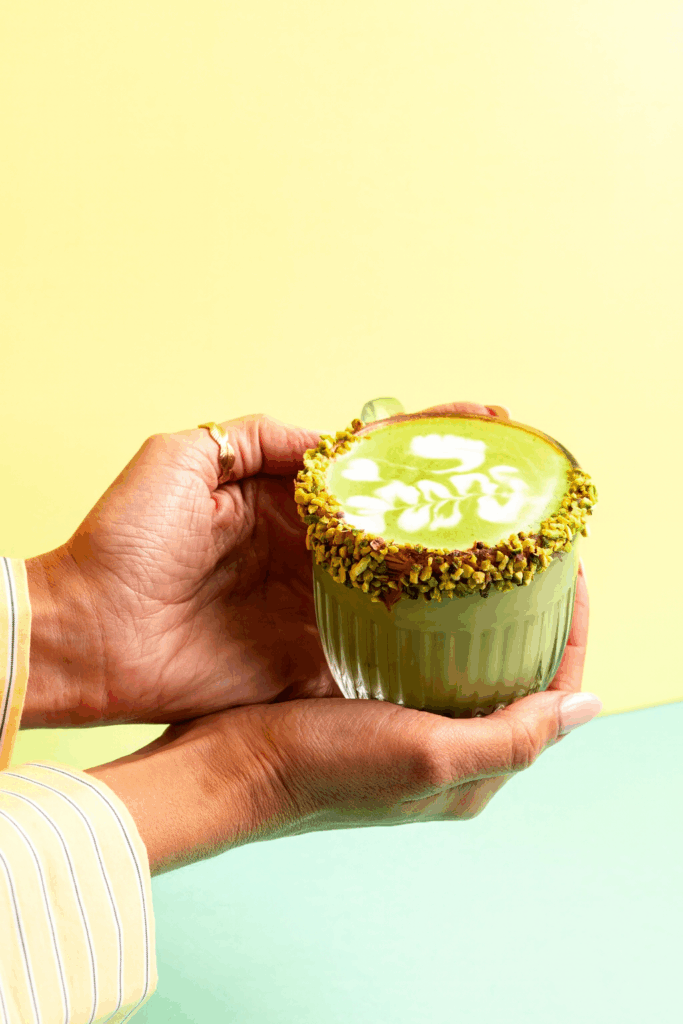 Dans nos coffee shops, ce retour s’accompagne d’un soin particulier apporté à chaque étape. Pour THE ULTIMATE PISTACHIO LATTE, nous calibrons la mouture pour obtenir un espresso structuré, légèrement chocolaté, capable de soutenir le praliné sans perdre sa définition. La texturisation du lait de pistache TÁCHE se fait dans une plage de température qui protège ses arômes et sa douceur naturelle. Pour THE ULTIMATE PISTACHIO MATCHA, nous fouettons un matcha bio au grain fin, pour une liqueur nette, sans amertume dure, puis nous marions le praliné et le lait de pistache de façon à conserver l’éclat végétal du thé. Le résultat, dans les deux cas, c’est une tasse équilibrée, lisible, qui se boit avec plaisir du premier au dernier centimètre.